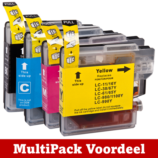 Huismerk LC980/ LC985 XL Brother Inktcartridges | Zwart en Kleuren | MultiPacks & Los | XL Veel Meer Prints, Zelfde Formaat |