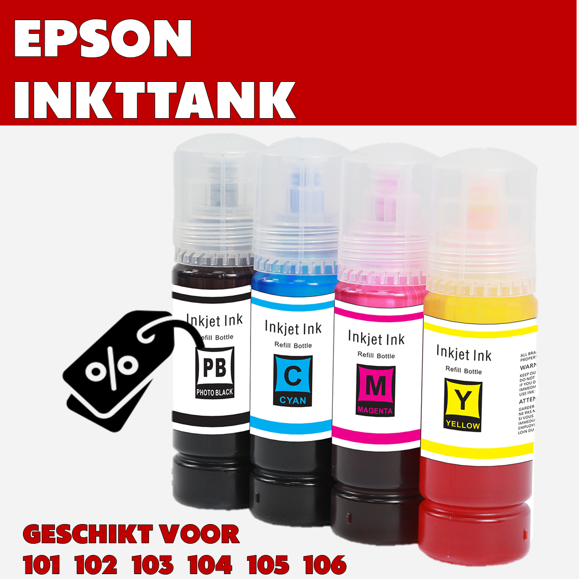 Huismerk 102 / 103 /104 Inktflesjes voor Specifieke Epson ET- Printers (70 ml.) | MultiPacks & Los | ISO9001, ISO14001, CE, Rohs |