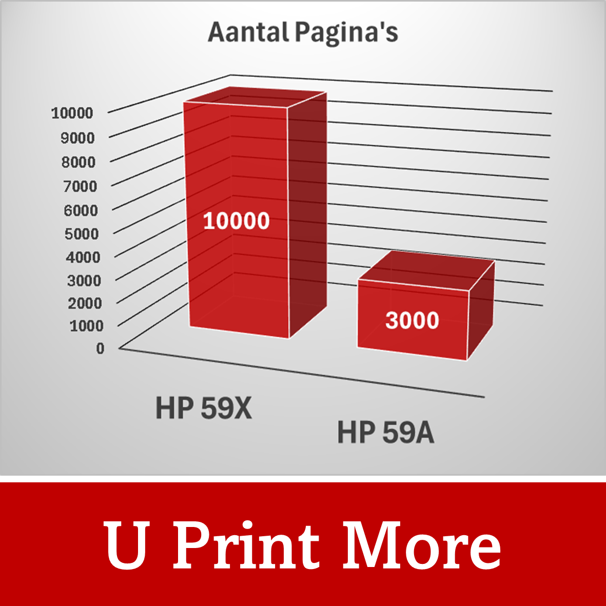 Onze HP59A Premium Huismerk Toners printen 3000 pagina's. Ook bekend als HP 59A / HP 59X / CF259A / CF259X.